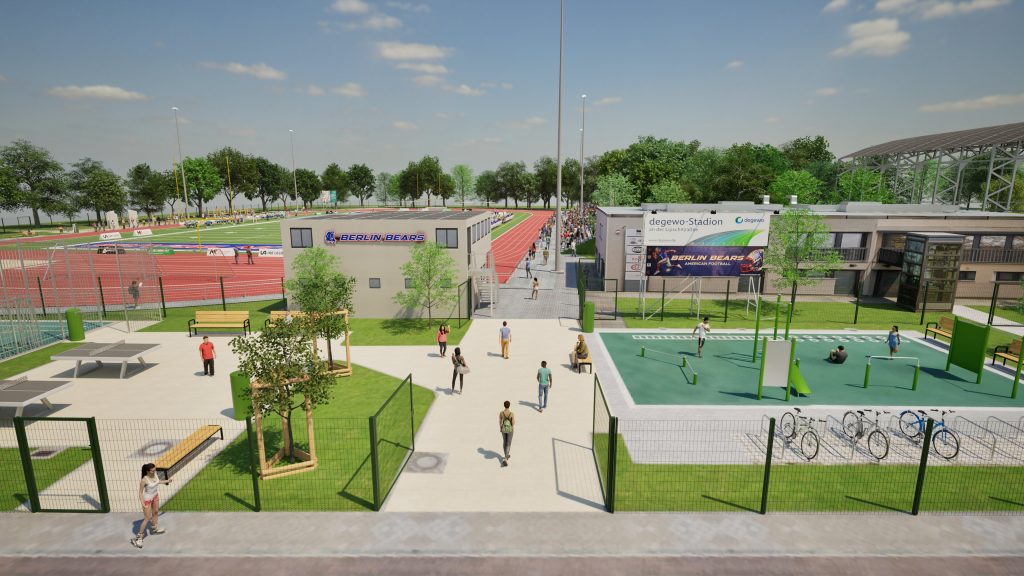 - zusätzliche Funktionsgebäude für Training, Fitness und Vereinsleben